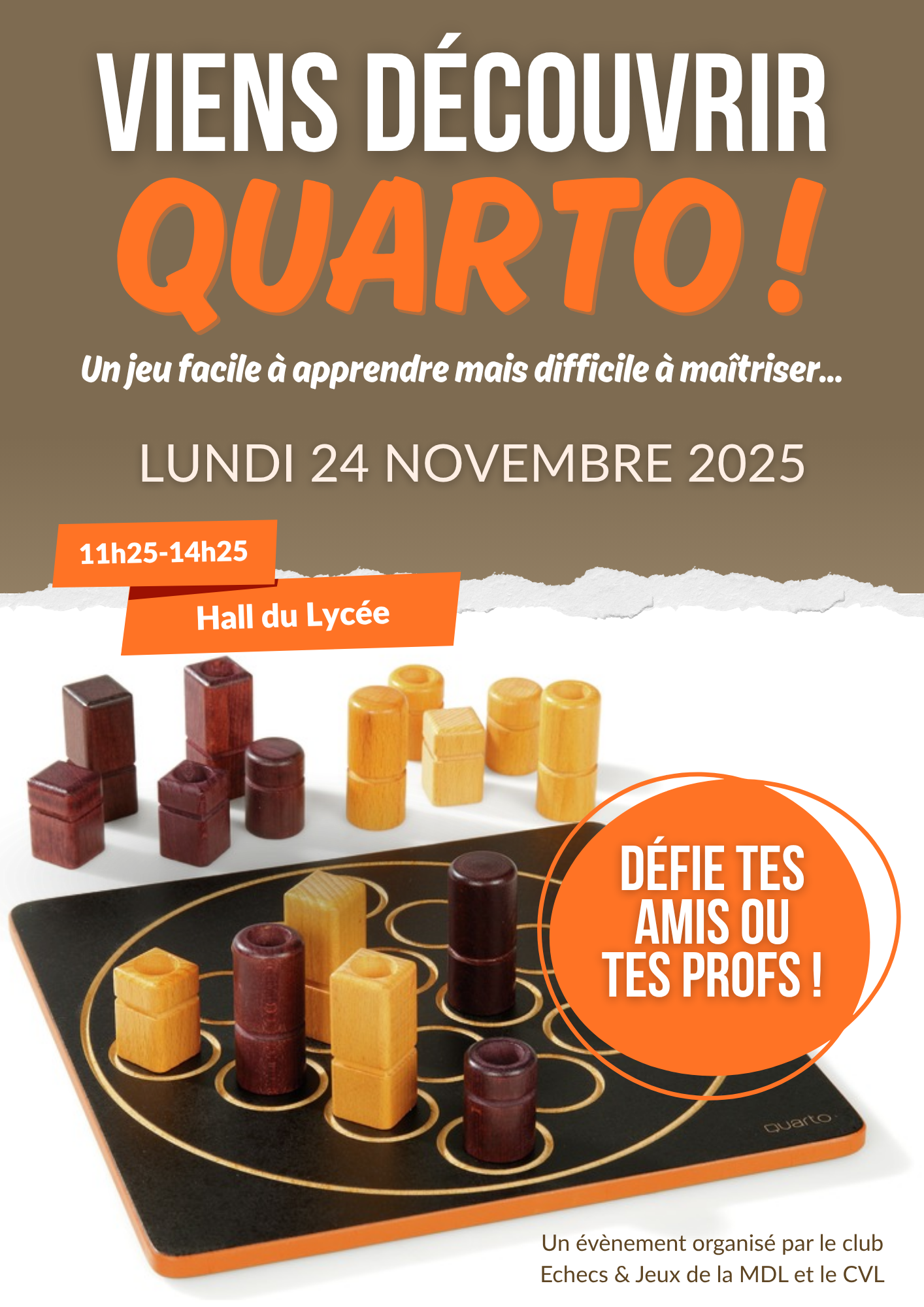 Le lundi 24 novembre de 11h30 à 14h30, le club Echecs et jeux de société de la MDL et le CVL ont (...)