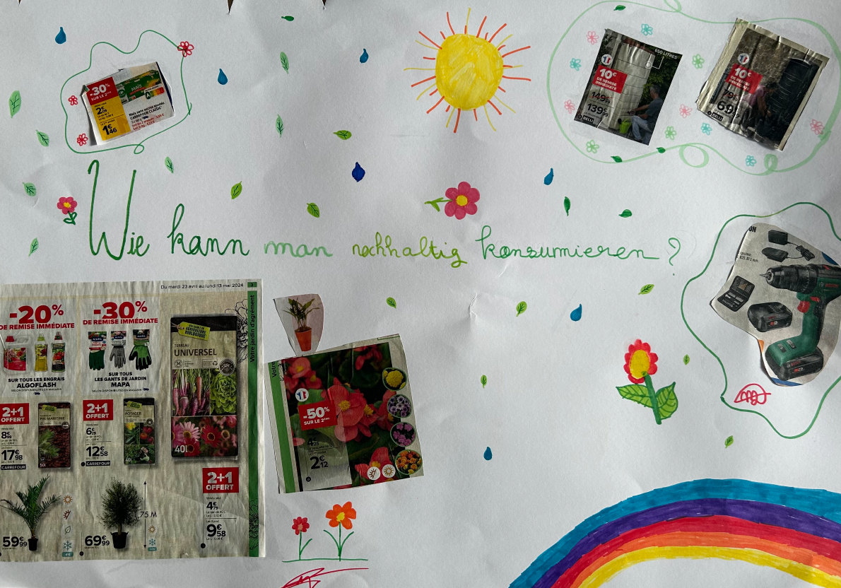 Les collégiens et les lycéens ont travaillé en amont avec leurs professeurs sur le thème : "Comment consommer de manière durable ?" puis ils se sont retrouvés en équipes pour échanger en langue allemande sur ce sujet et produire une affiche.